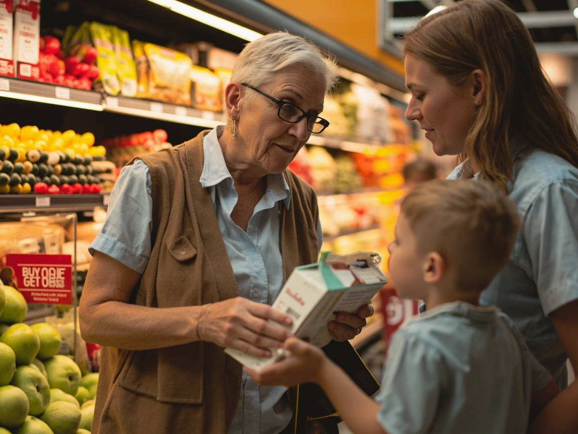 导购员小张注意到这对母子时,母亲正对着价签上的"买一送一"发呆。林建军刚要开口阻止,女孩却先递过一盒新鲜牛奶:"阿姨,尝尝这个新日期的吧,今天会员日第二件半价呢。"母亲的手顿在半空,小张又笑着补充:"您看这成分表,蛋白质含量比临期的还高些,给家里孩子喝更放心。"
