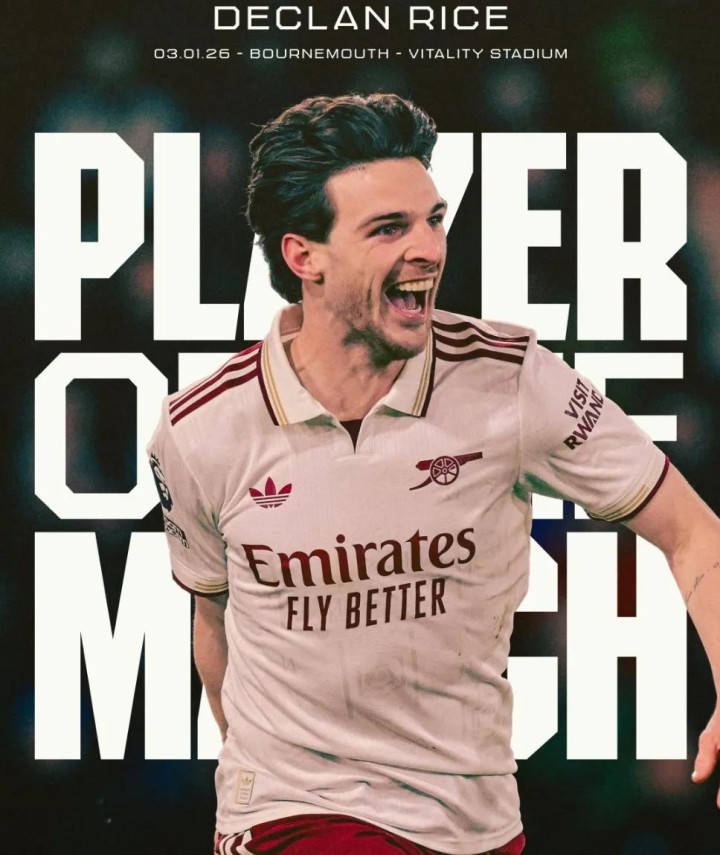 赖斯被英超和阿森纳官方评为了本场比赛最佳球员。